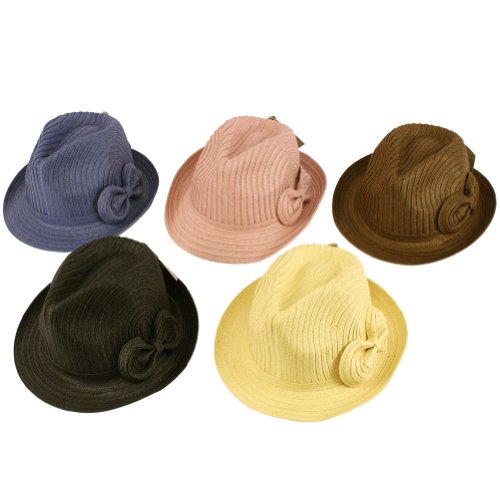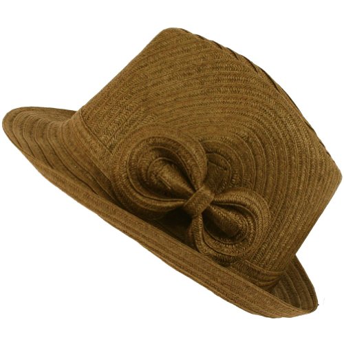 -. Title : Ladies Summer Braid Ribbon Bow Fedora Trilby Hat Brown