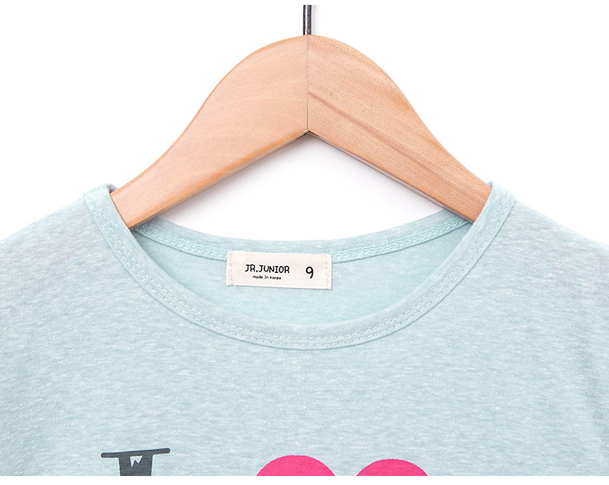 큼직하고 귀여운 영문 레터링, 하트 나염이 포인트로