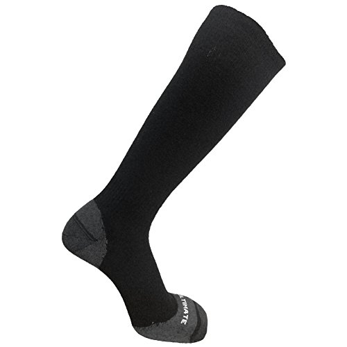 -. Binding : Apparel -. Brand : Ultimate Socks -. Color : Black -. Department : mens -. Feature : HIGHEST MERINO WOOL CONTENT 70%. We don't skimp on the wool to save money. / ULTRALIGHT FIT: Our highest performance fit. Mild Compression and moisture management without any extra bulk. / SOCK TECHNOLOGY: FLAT KNIT TOE SEAM: Virtually unnoticable even in tight ski boots! ARCH BRACE: Holds the sock in place STAY UP CUFF: No saggy socks here! Ultra smooth cuff stays up! / ULTIMATE KNITTING: Utilizing our unique knit pattern our socks deliver the right amount of cushioning in the toe heel and shin. / ULTIMATE GUARANTEE: 100% guarantee. Love them or we give you your money back. -. IsAdultProduct : 0 -. ProductGroup : Apparel -. ProductTypeName : SOCKSHOSIERY -. Title : Ultimate Socks Ultralight Merino Wool Ski Snowboard Performance Socks Unisex Black
