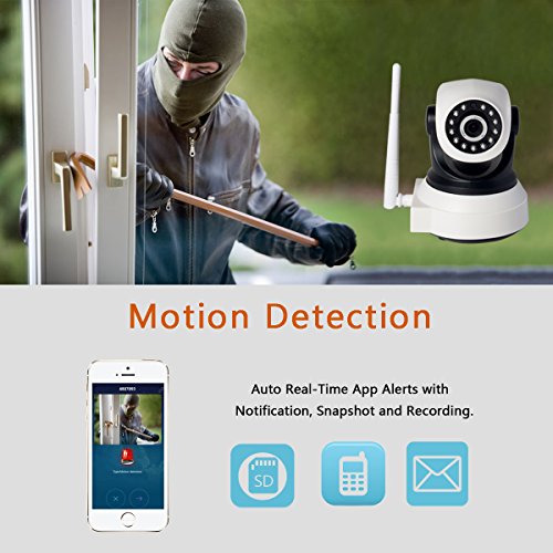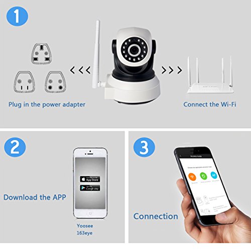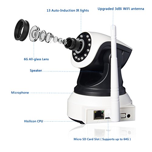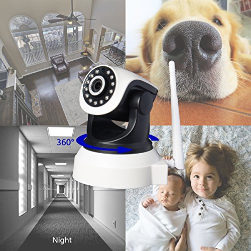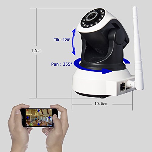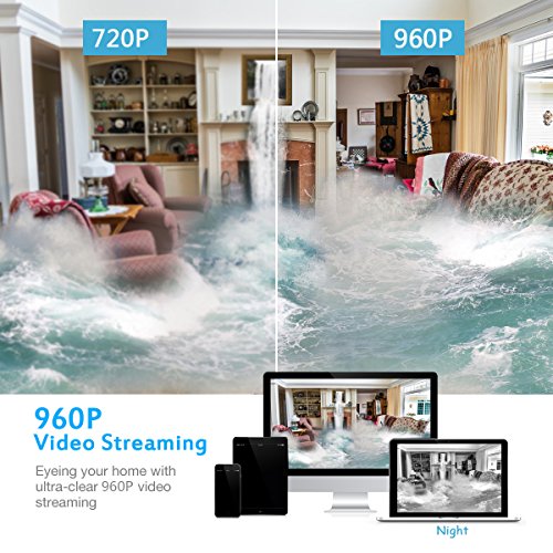 -. Feature : 【Super Image Quality】1280*960P HD resolution, 13 LEDs and 3.6mm F2.0 camera with Auto White Balance and Exposure. Cooperate with the IR technology provides you a clear image at 30FPS and 33ft range Night Vision. / 【Rotatable Wide Angle】 Horizontal angle 355 degree and 120 vertical degree controllable via APP, you can see real 360°full view without dead ends by sliding you finger on the screen of the matching device. / 【Two Way Audio】Equip with Built-in microphone and speaker, you can communicate with family, friends and your pets on mobile devices. You can also read the image and control the camera anywhere using the APP. / 【Motion Detection & Alarm Linkage】With the Built-in Motion sensor, this camera will send alarm information to you if there is a abnormal condition. Support to work with 433Mhz Alarm Linkage like fire detector, door alarm and so on. It also supports Loop Recording. / 【One Key Connection】Download APP from App store or Google play store, Sonic Recognition Technology featuring provides one key connection for your mobile device and the camera at first time.No Risk of P.R.Ivacy Disclosure.