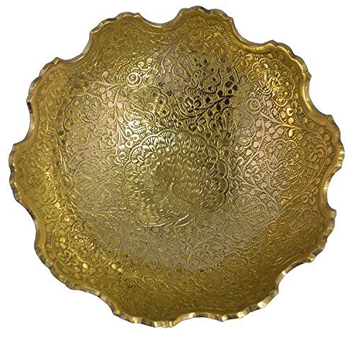 Zap Impex Pure Golden Plated Brass Decorative dry Fruit Bowl carving Work - Size- 7" Beautiful Peacock design Kitchenware Gift