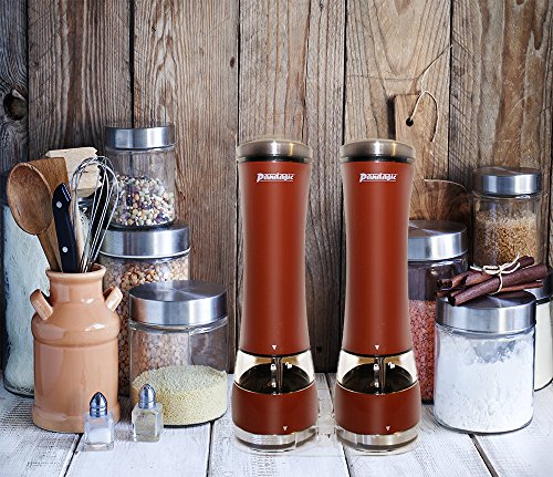 Pandasic electric Salt And Pepper Grinder set of 2 | Battery operated adjustable with stand LED Light