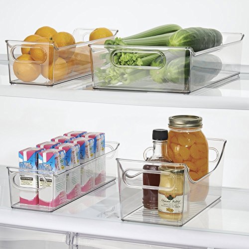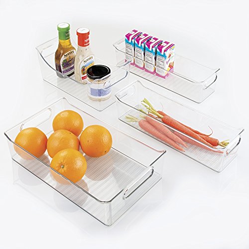 mDesign Kitchen, Pantry, Refrigerator, Freezer Storage Organizer Bins - Set of 4, Clear