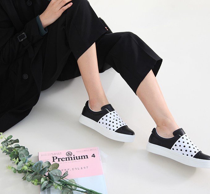 商品名:スリッポン レディース スニーカー ドット 2018 春 ファッション 靴 婦人靴