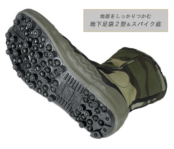 | 仕様 | カラー:緑迷彩 靴丈:約23cm ソール部分:耐水糊引加工 衝撃吸収中底 |