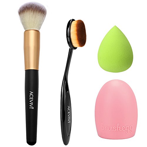 ACEVIVI Cosmetic Cream Powder Powder/ Makeup Face Blush Brush + Mini Size Makeup Puff Sponge + Makeup Brush Cleaner