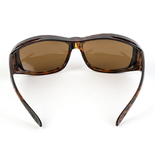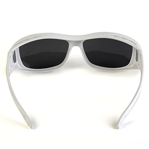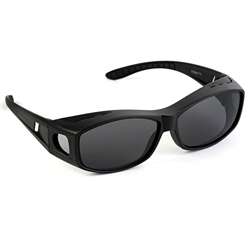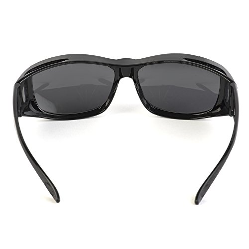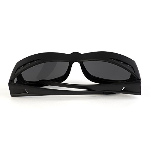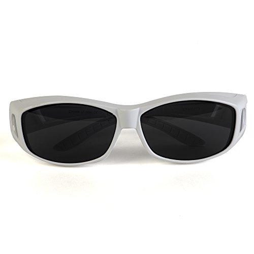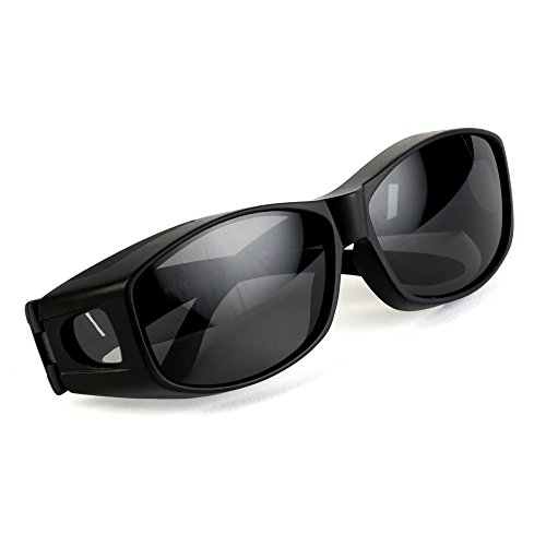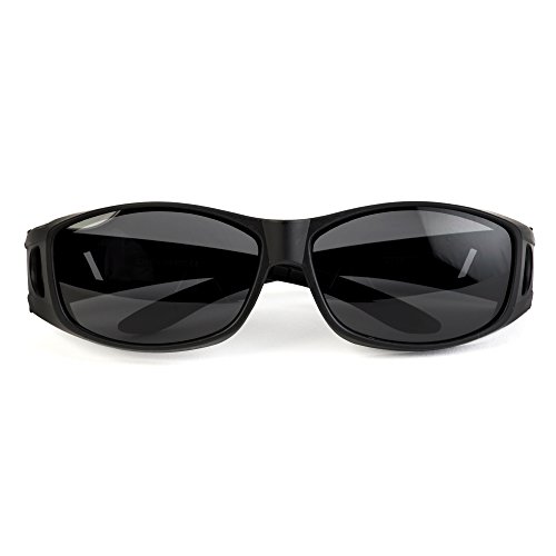 Product Description Pointed Designs over-glasses sunglasses are great for anyone who just wants protection from the sun while wearing their prescription glasses. These stylish, no-hassle sunglasses are lightweight and easy to slip on over your prescription glasses. They will fit easily over most glasses and are perfect for both men and women. They are designed to wrap around your face, blocking the sun from the side as well; a practical alternative to expensive prescription sunglasses! Our polarized sunglasses provide 100% UV protection, increased clarity, and glare protection. These make a perfect pair of sunglasses for yourself or even a gift for a loved one. Dimensions: Height - 47mm / 1.85in Arm Length - 30mm / 1.18in Temple Length - 133mm / 5.25in Width - 146mm / 5.75in 0