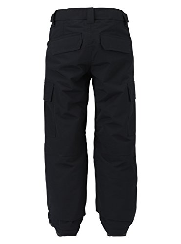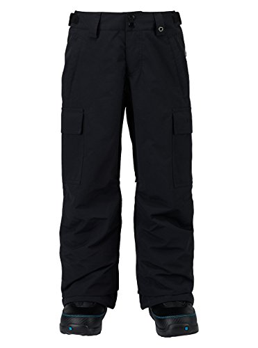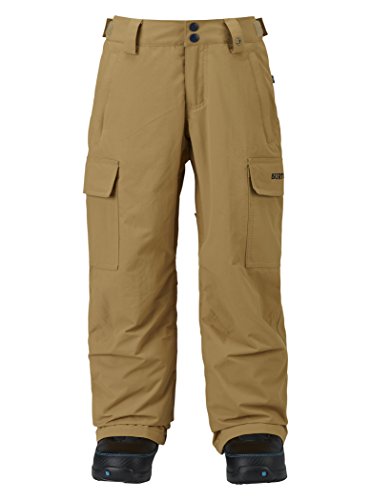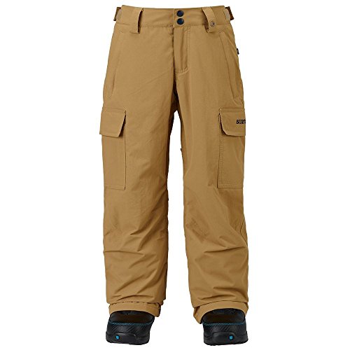 Binding : Apparel Product Description KEY FEATURES Velcro closure cargo pockets handwarmer pockets and two back pockets allow him to organize his gear his way Super warm Thermacore synthetic insulation keeps him nice and toasty bluesign fabrics ensure environmentally friendly production processes Made for his adventures the Burton Exile Cargo Insulated Snowboard Pant is durable and highly functional Mapped with Thermacore? 60g throughout and DRYRIDE 10K waterproof protection so he can stay comfortable through moderate weather This classic fit cargo pant offers a room to grow system which allows you to get a second season of wear out of them if he has a sudden growth spurt Mesh lined inner thigh vents provide him with a quick blast of air when he gets stuffy and Velcro closure cargo pockets hold all his essentials The Exile Snowboard Pant is there for him all season long SPECSWaterproofing 7/10Fit RelaxedInsulation Type SyntheticWarmth 6/10Waterproof Rating 8 000 10 000mmInsulation Amount grams 60Breathability Rating grams 5000Waterproof Rating mm 10000FEATURESGrow CuffsInsulatedCargo PocketsBoot GaitersWaist PocketsThigh VentsBack pocketsbluesign Approved Fabric 0