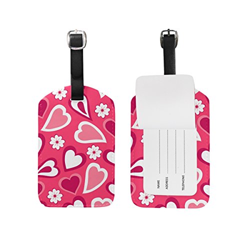 (My Little Nest)/Accessories/Luggage, Bags Travel/DIRECT FROM USA/Travel Luggage Tag Romantic Hearts Flowers PU Leather Baggage Suitcase Tag Name Address ID Labe...