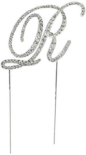 Unik Occasions Victorian Crystal Rhinestone Wedding Cake Topper, Large, Letter R, Silver
