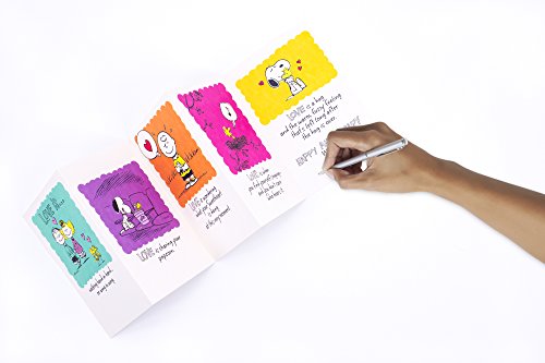 Studio : Hallmark Marketing Company, LLC (Office) Publisher : Hallmark Marketing Company, LLC (Office) Binding : Office Product Product Description Send a sweet anniversary greeting to friends, family, and more with this card featuring Linus and Lucy holding hands. The message on the front of the card reads, "Love is... walking hand in hand... or wing in wing." Open the card to reveal the inside message, "Love is sharing your popcorn. Love is wondering what your Sweetheart is doing at this very moment. Love is when you find yourself singing?and you don't care who hears it. Love is a hug and the warm, fuzzy feeling that's left long after the hug is over. Happy Anniversary With Love!" The card measures 8.3 inches long by 5.8 inches wide made with high quality cardstock paper; an envelope is included. All Hallmark cards are made with paper from well-managed forests. Hallmark was founded in 1910 when 18-year-old J.C. Hall arrived in Kansas City, Missouri, with a couple of shoeboxes of postcards under his arm and the American dream in his heart. Hallmark greeting cards are sold online and in nearly 40,000 retail stores across the globe and people continue to recognize the iconic Hallmark brand as "the very best." 0