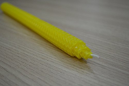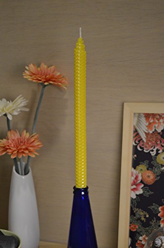 100% Pure Beeswax Handmade Taper Candles (Honey Yellow) - 10 Inch Dripless Pair - Natural Subtle Honey Smell