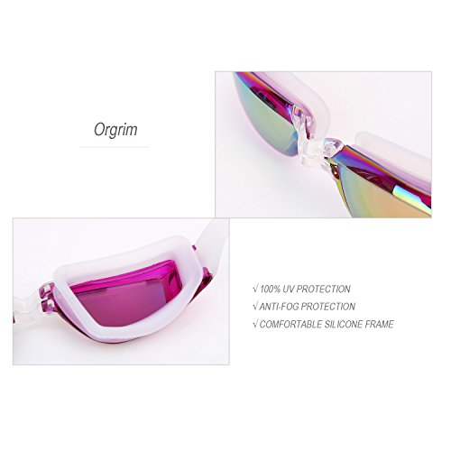 √Orgrim swimming goggles using high quality imported PC and silicone materials and imported UV stable materials. anti-shatter, anti-fog, anti-uv : Mirrored and anti-fog lenses filters out powerful rays of light to enhance sight clarity, uv protection makes it nice in the bright sun outdoors. Ideal for use in outdoor swimming or competitions.
