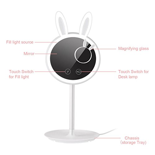 - Rabbit mirror with lights 2 in 1: The elaborate design combines the makeup mirror with the lamp, meet your different needs. An extra 3X magnifying glass helps you create an more exquisite makeup