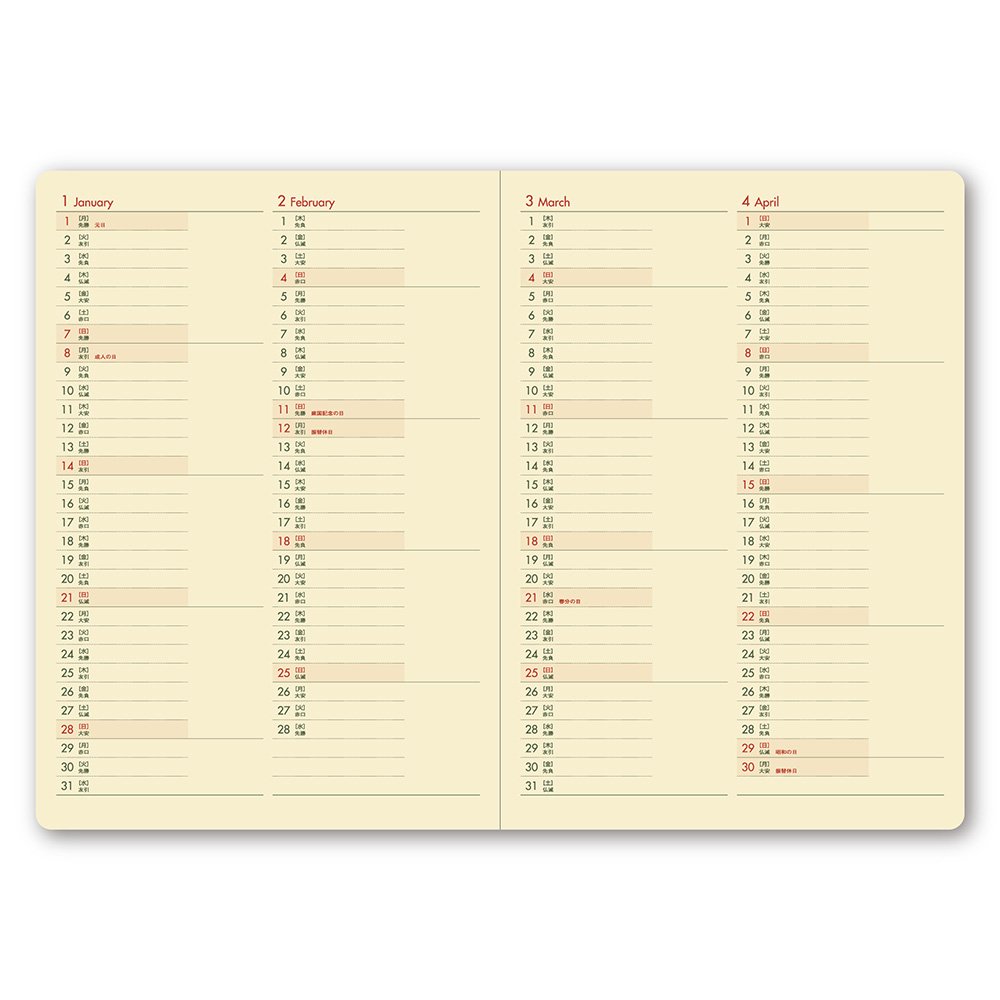 【Monthly page】 The layout of the ruled page type in which the dates are arranged vertically in a spread of 4 months.