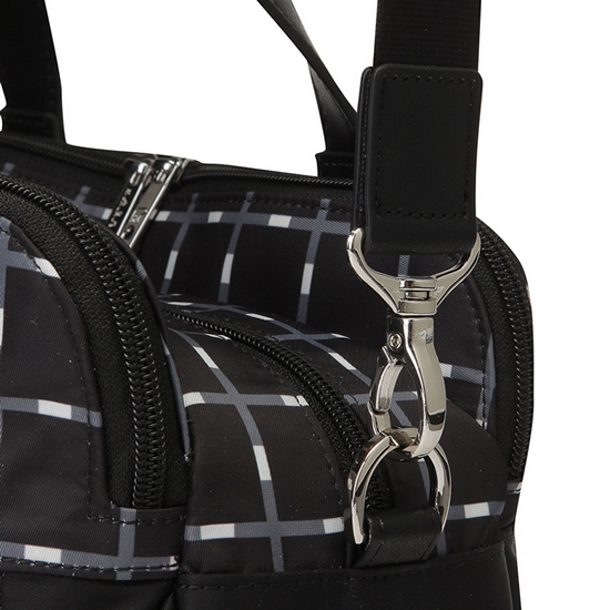 - 사각 프린트 패턴으로 모던한 여성 백팩.