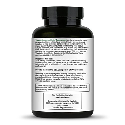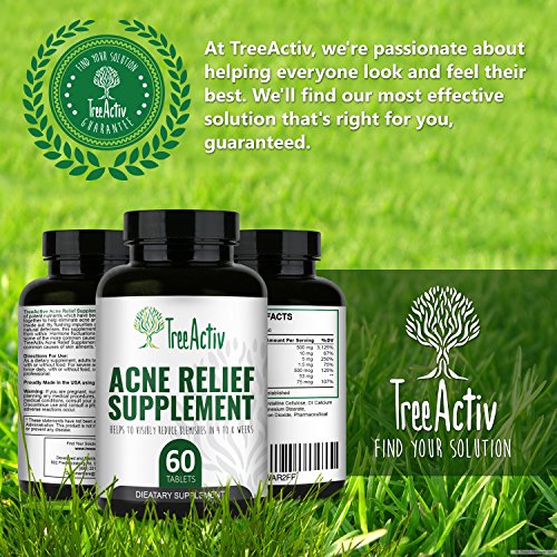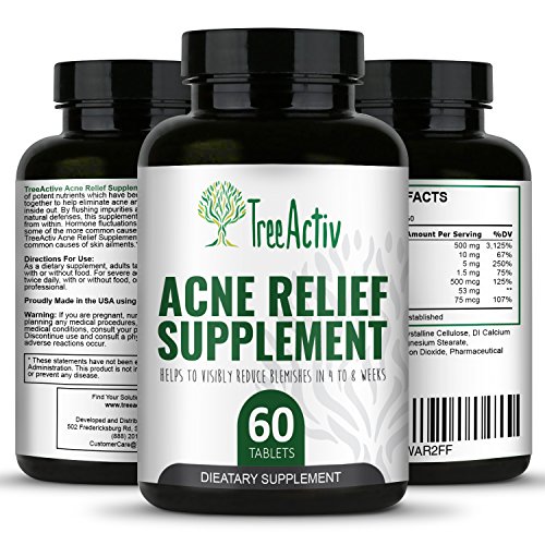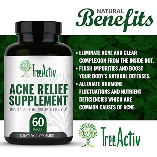 Some types of acne is the result of your hormones going awry or your body fighting inflammation. When it's not enough to treat your exterior with serums, cleansers and other topical treatments, you need to supercharge your skin care regimen with a safe and effective acne supplement. TreeActiv Acne Relief Supplement contains a specific blend of potent nutrients that have been clinically proven to help eliminate acne from the inside out. By flushing impurities and boosting your body's natural defenses, those stubborn bumps and blemishes will fade away in as little as a few weeks and you also prevent future breakouts. Hormone fluctuations and nutrient deficiencies are some of the more common causes of acne. With ongoing use, TreeActiv Acne Relief Supplement will help alleviate these common causes of skin ailments.