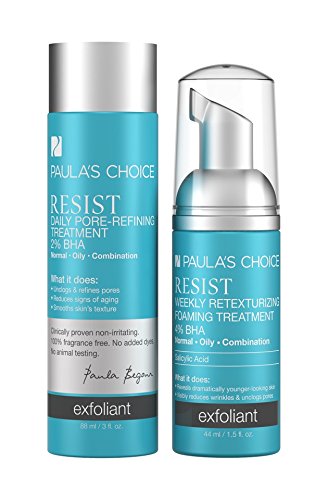 -. Feature : Shrinks enlarged pores, clears breakouts, reduces wrinkles and signs of aging / 2 products: Resist Daily Pore-Refining Treatment 2% BHA, Resist Weekly Retexturizing Foaming Treatment 4% BHA