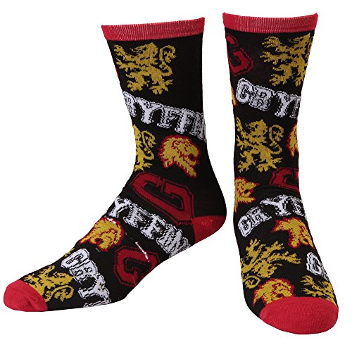 Product Description1-2-3-4! Let me hear your Gryffindor roar! This officially licensed Harry Potter crew socks feature an assortment of Gryffindor and Harry Potter symbols on a black, polyster sock. Fits mens shoe size 6-12.0