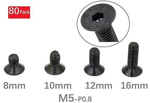 - Package: Total 80(+/-1) x M5 Hex Socket Flat Head Countersunk Head Screws, Different Length Mixed