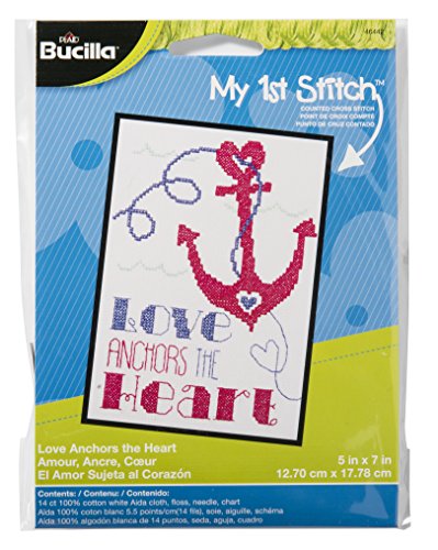 Bucilla My 1st Stitch Counted Cross Stitch Kit, 5 by 7-Inch, 46442 Love Anchors The Heart