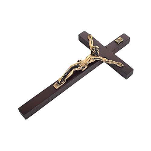 6 3/4" Wood Cross with Crucifix (Dark Brown)