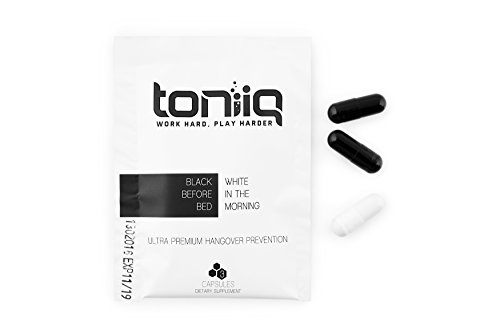 ★ PARTY HARD. RECOVER HARDER - Put simply, Toniiq is your easy to use hangover solution! With 18 capsule and 6 servings--two black pills after drinking, and one white one in the morning, we make sure you can take on the day, hangover free.