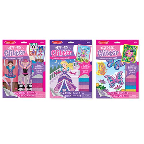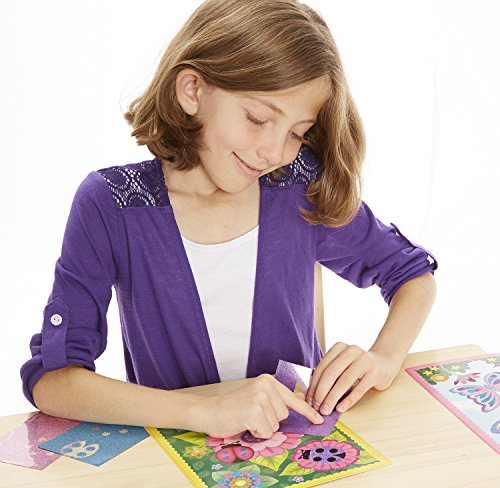 Make 2 gorgeous peel-and-sparkle scenes! Our patented technology lets kids get the look and feel of real glitter without the mess. One simple process creates amazing results: Just peel away a section of white paper from the flower and butterfly scenes to reveal the sticky surface, then press on one of the glitter sheets for instant sparkling art.Feature