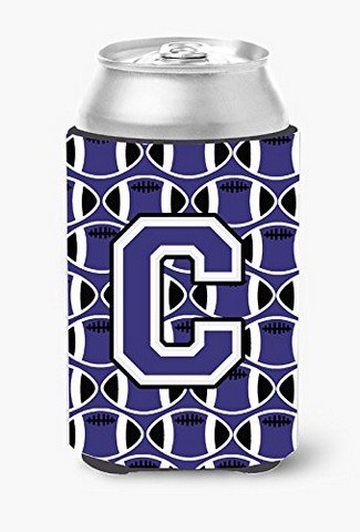 Caroline's Treasures CJ1068-CCC Letter C Football Purple and White Can or Bottle Hugger, Multicolor