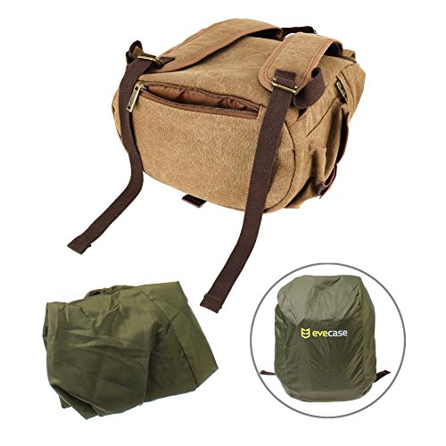 Evecase brand new compact multi use backpack. Easily convert this backpack from everyday school backpack/Rucksack into DSLR Camera Bag by simply zip/unzip middle compartment. Once removed the padded camera insert, you will be able to fit in books, notebook, and other school supplies.