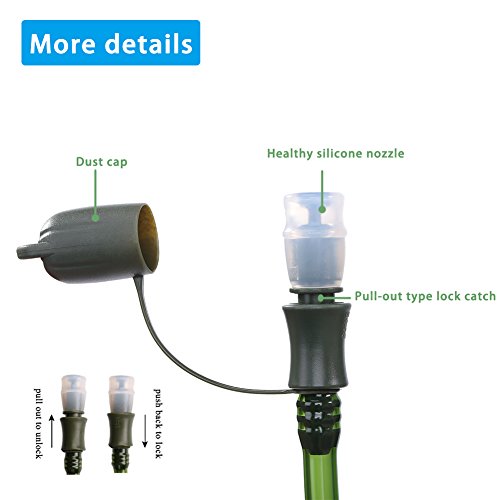 -. Feature : Free cleaning kit:You will get cleaning kit for free.The long brush clean the inside of water reservoir,and the short brush clean the tube.You will never worry about how to clean the hydration bladder / Antibacterial Technology:The technology can eliminate harmful organisms, whether bacteria or mold, are difficult to survive in the hydration bladder.To ensure healthy drinking water / FDA certification and BPA Free:The hydration water bladder taste free, non-toxic, BPA free,and FDA certification / 100% leakproof:You won't be slowed down with our high flow bite-valve. Simply bite the mouthpiece to suck water. Soft mouthpiece with easily accessible ON/OFF valve prevents leakage. It also has a cover to keep dirt out. Conveniently control the water flow by biting, when not bite, the water will not leak out. Quick-release tube is detachable. Auto shut off while the tube is removed, hydration water bladder will stay filled non-leaking. store neatly in fridge/icebox without tangling hose / 100% money back guarantee:If the hydration bladder did not meet your expectations or you need a replacement,please do not hesitate to contact us. We offer 60 days money back guarantee.So you can order it immediately