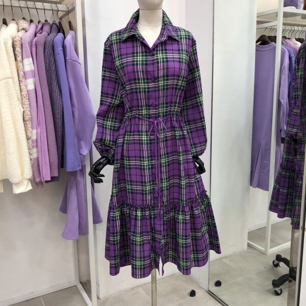 밑단프릴체크원피스 입니다. FREE사이즈 입니다.