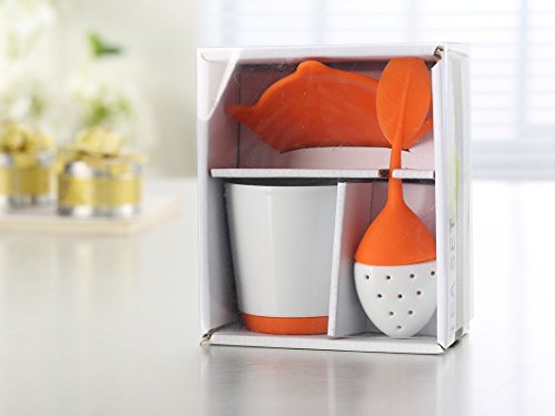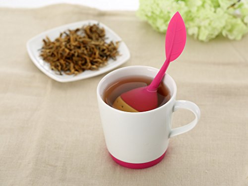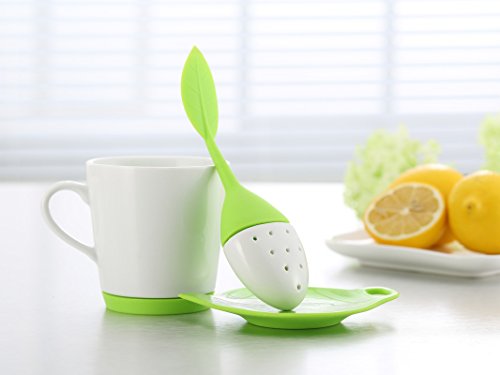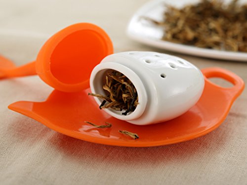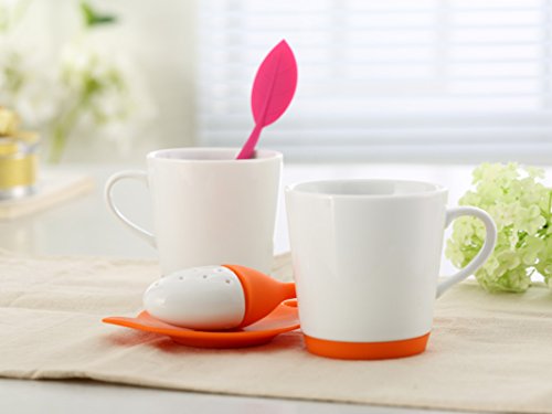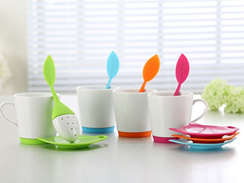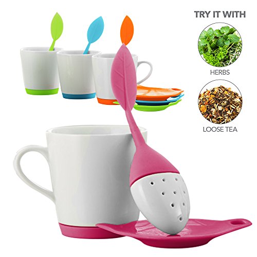 -. Feature : CUTE SILICONE & CERAMIC TEA INFUSER MAKES TEA TIME FUN: This is no ordinary tea ball infuser or metal basket strainer type infuser. Made from brightly colored soft, resilient silicone and ceramic that will last a lifetime. Comes in four fun colors: Red Hibiscus, Orange Pekoe, Green Sencha, and Blue Matcha. / MAKES IT EASY TO STEEP FRESH HERBS & GINGER: Infuse your favorite type of loose leaf tea or pack the infuser with fresh herbs you've grown yourself, healthy ginger or grains. Make a lovely rose tea with dried or fresh petals from your own garden. / MICROWAVE AND DISHWASHER SAFE: Ceramic tea cup and FDA-approved food grade silicone are a breeze to clean. Simply pop the top off the infuser, rinse, and send it through the dishwasher. Ceramic mug features a built-in silicone coaster. / FLEXIBLE & DURABLE BPA-FREE SILICONE & CERAMIC: Preserve all your tea's essential nutritional elements, unlike paper filters and metal strainers. All the healthy antioxidants and flavor remains in your tea cup with this creative loose leaf tea infuser. / 100% MONEY BACK GUARANTEE: We stand behind our LEAFI Ceramic Tea Mug & Infuser Set with a full guarantee. If you don't absolutely love your tea products, we want to know. Get 10% off with promo code 'TEABLOOM' when you buy 2 or more Teabloom products.