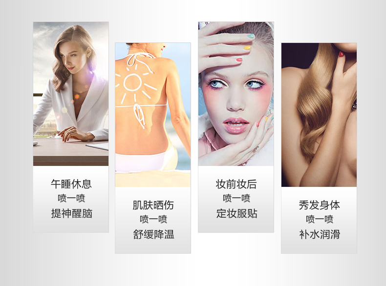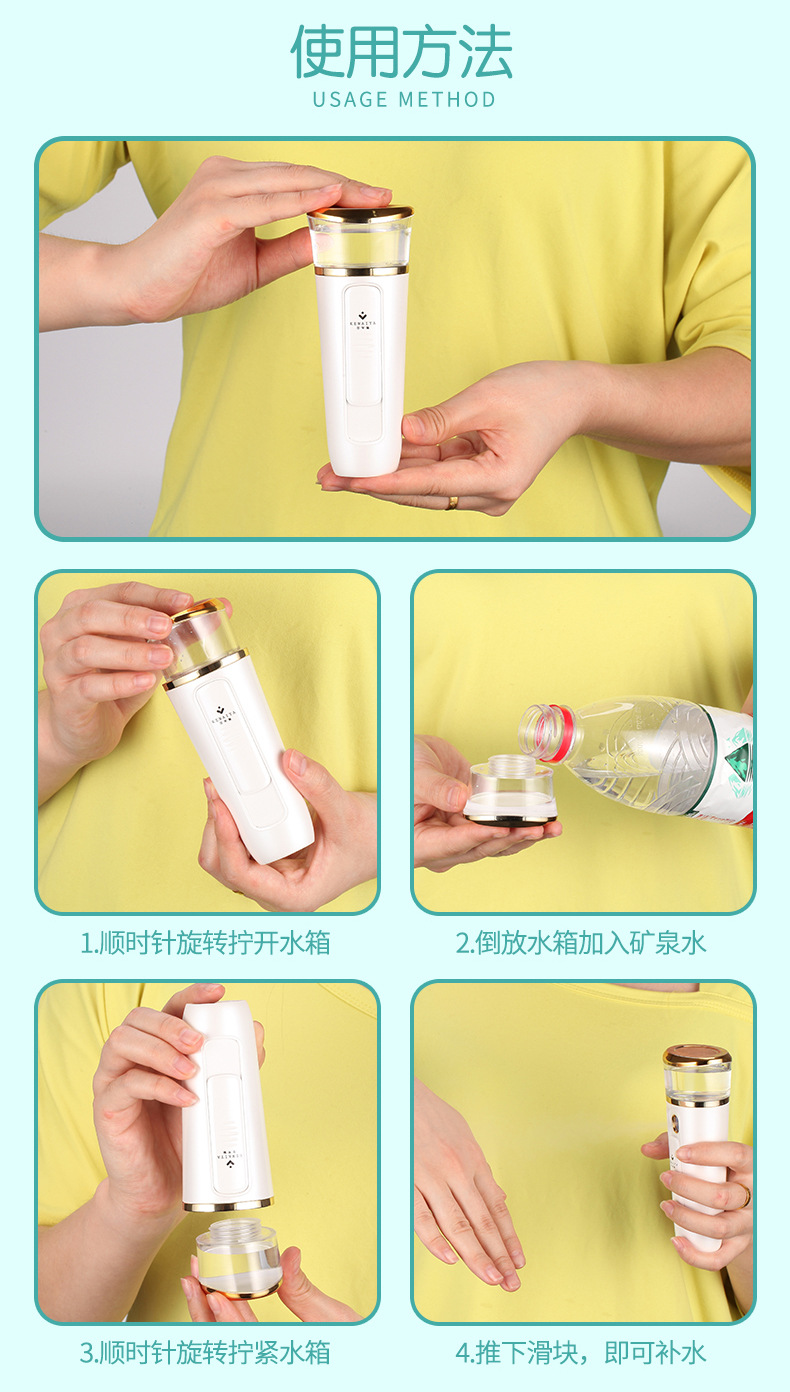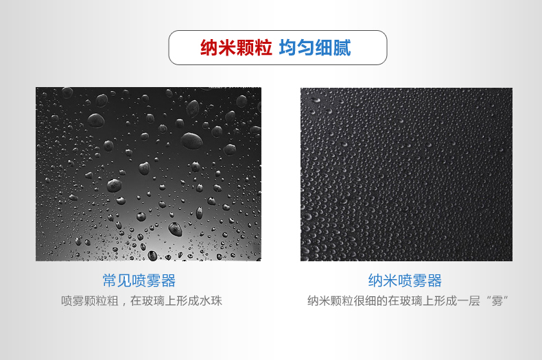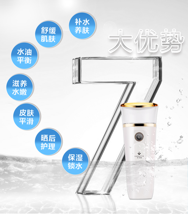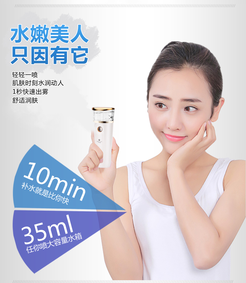 喷雾距离:雾大细腻,价格实惠,没化妆的皮肤离皮肤5CM左右喷雾,化妆皮肤请离皮肤12-15CM左右喷雾,不会花妆。