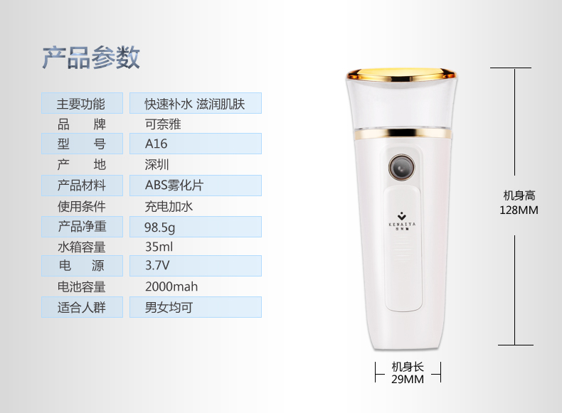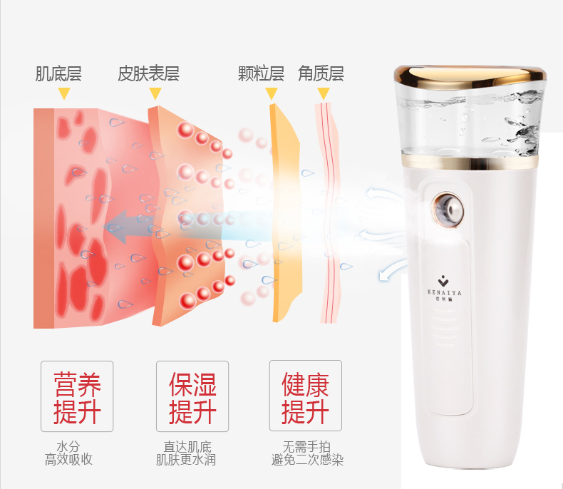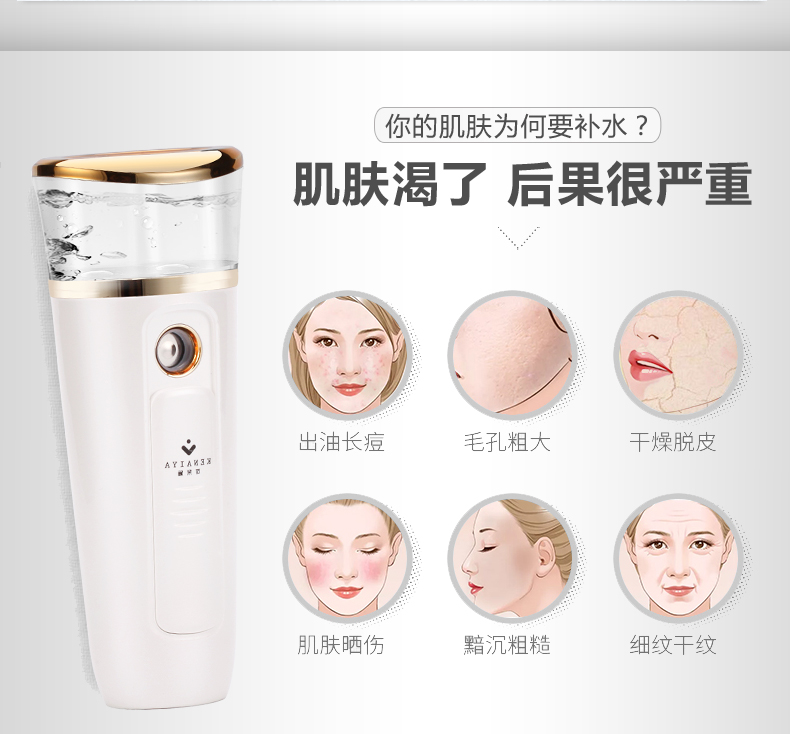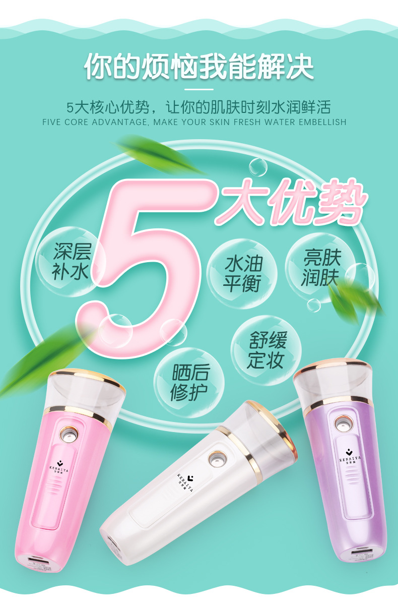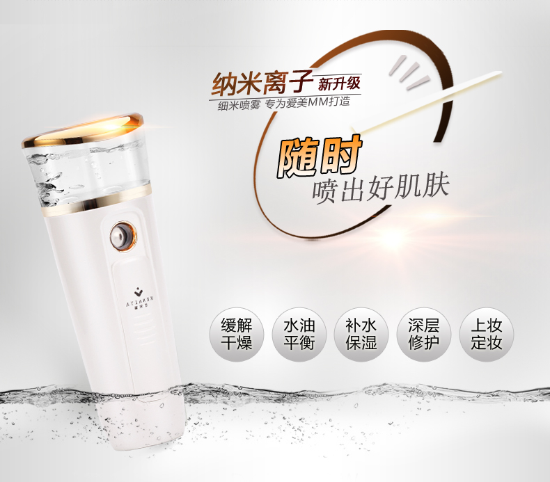 喷雾距离:雾大细腻,价格实惠,没化妆的皮肤离皮肤5CM左右喷雾,化妆皮肤请离皮肤12-15CM左右喷雾,不会花妆。