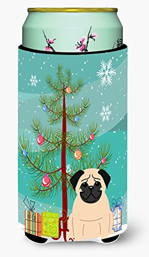 Caroline's Treasures Merry Christmas Tree Pug Fawn Tall Boy Beverage Insulator Hugger BB4133TBC, Multicolor