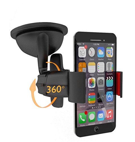 Car Phone Mount Holder - Universal Design for Apple iPhone 6 / iPhone 6 Plus, Samsung Galaxy S5, Note 4, Compatible with Most Smartphone / Cell Phone Models - Strong Suction To Safely Fix Mount to Windshield - AT&T, Verizon, Sprint - Easy to Assemble