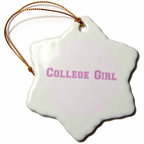 3dRose LLC orn_151216_1 Porcelain Snowflake Ornament, 3-Inch, "College Girl Text in Pink-Girly Retro Preppy-Students or Graduate School Fashion"