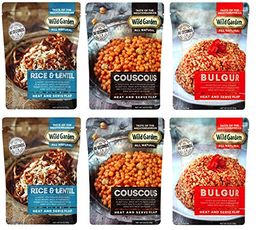 Wild Garden All Natural Heat & Serve 6 Pack Variety Pack, 8.8 Oz Each (2- Bulgur Pilaf, 2- Couscous Pilaf, 2- Rice & Lentil Pilaf)