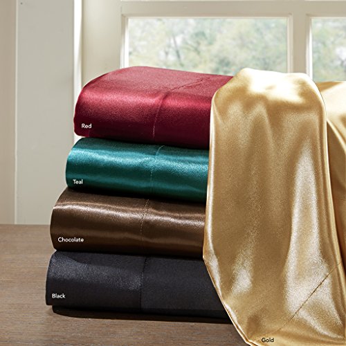 Madison Park Essentials - Satin 6 Piece Sheet Set - Red - Full - Extra Soft - Easy Fit - Includes 1 Flat Sheet, 1 Fitted Sheet, 4 Pillowcases