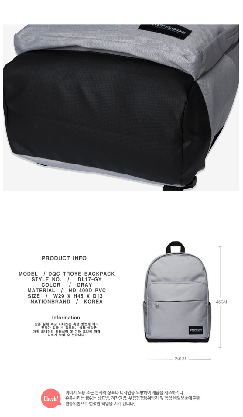 DQC 신상품 원 포켓 디자인 트로이 백팩