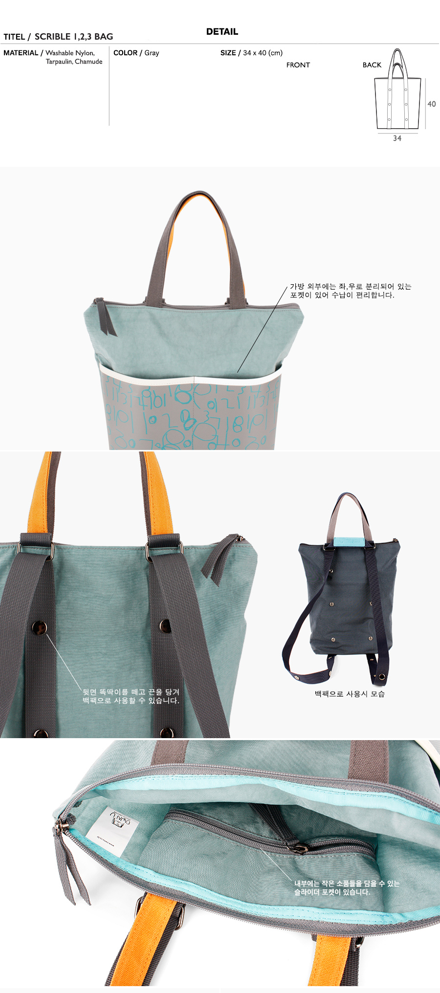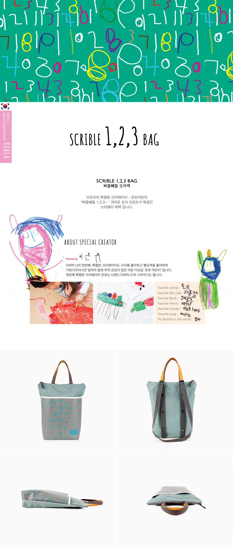 아이들의 숫자 드로잉을 패턴 프린팅하여 세련되게 재해석한 백팩,숄더,토트겸용 3way 숫자백 입니다.