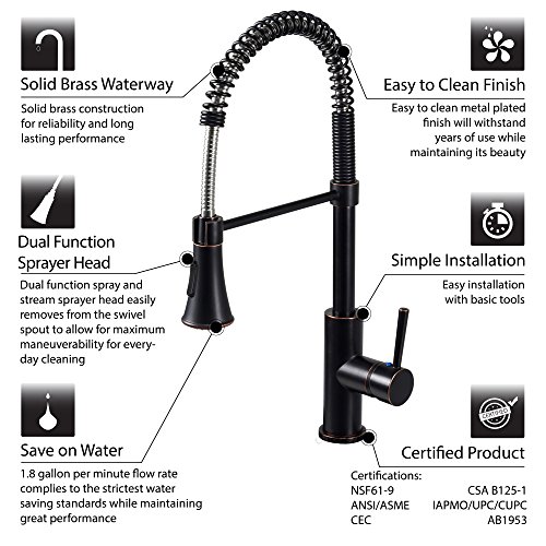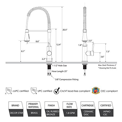 Decor Star TPC13-TO Contemporary 20" Pull Down Spray Kitchen Sink Faucet cUPC NSF AB 1953 Lead-Free Oil Rubbed Bronze