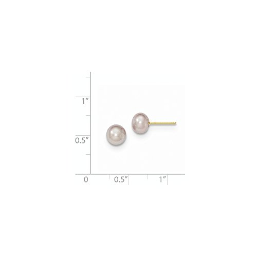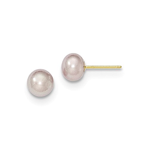Solid 14k Yellow Gold 6-7mm Purple Button FW Cultured Pearl Stud Earrings