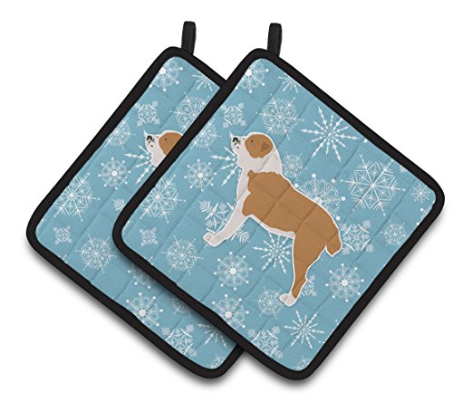 Caroline's Treasures Winter Snowflake Central Asian Shepherd Dog Pair of Pot Holders BB3528PTHD, 7.5HX7.5W, Multicolor