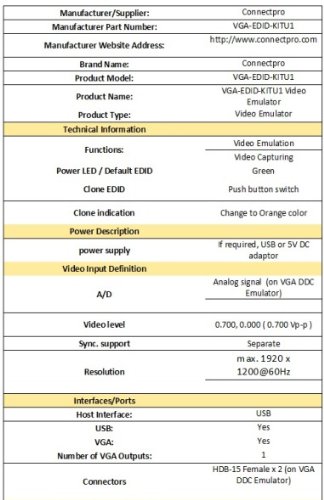 ConnectPRO VGA-EDID-KITU1, VGA DDC / EDID Ghost Emulator Professional Kit