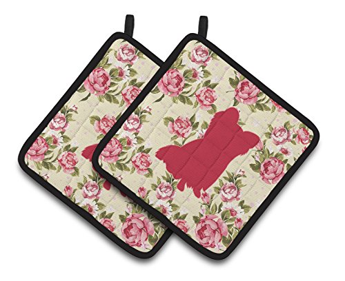 Caroline's Treasures Chihuahua Shabby Chic Yellow Roses Pair of Pot Holders BB1115-RS-YW-PTHD, 7.5HX7.5W, Multicolor