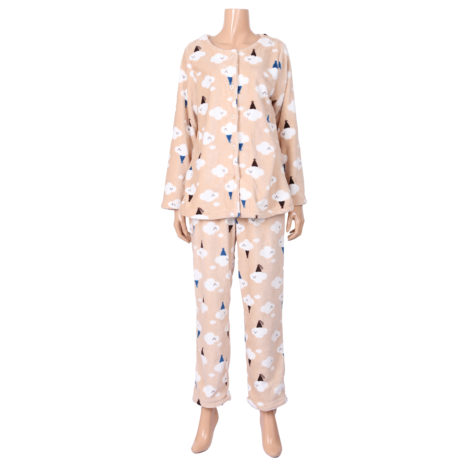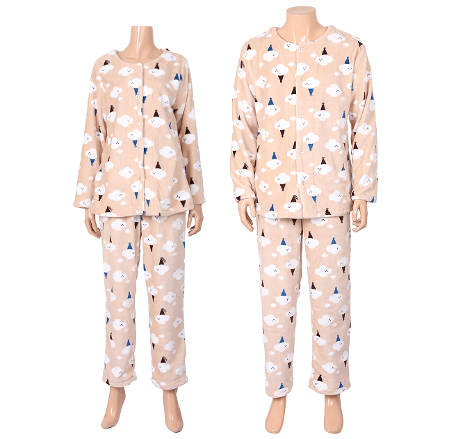 라운드카라의 구름 나염 수면 파자마.