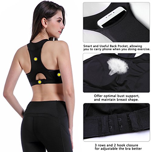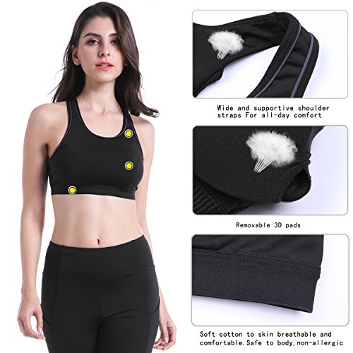 -. Feature : ◆◆Suitable for Any Fitness Activities: This womens high-support sport bra, perfect for training sessions at the gym, ideal for yoga, pilates or dance. Also suit for outdoor sports such as running, biking, boxing and walking. Deliver superior support & comfort during intense workouts. / ◆◆Design with Removeable Pads: Seamless Comfortable Sports Bra With Removable Pads, the inside of the cup has a small opening that contains a removable pad. Removable pads are easy to put in & take out. / ◆◆Racerback Style: This women racerback sports bras gives maximum freedom of movement, offers wide range of arm movement and non slip straps. 3 rows and 2 hook closure in the back for the purpose of adjust the sport bra to fit chest size better. / ◆◆Wide Shoulder Straps: The straps are wide and supportive as well. Soft elastic and stretchable straps built for all-day comfort and without pressure. / ◆◆Super Comfortable Fabric: Polyester 85%, spandex 15%. Soft, stretchy, and super breathable, Moisture Wicking. Super-smooth, double-layer fabric delivers superior next-to-skin feel for maximum support and shaping.