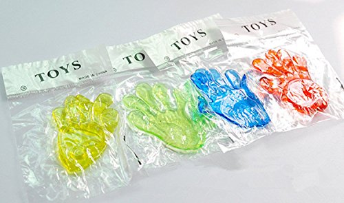 -. Feature : Material: Poly Ethylene. / Color: Random colors / Package includes 30 sticky hands of 5 different colors / FLEXIBLE- Our toy sticky hands are super flexible and can stretch up to double its size. kids will loves flinging them and stretching them over and over again. / Great paint splatter or party props for kids.